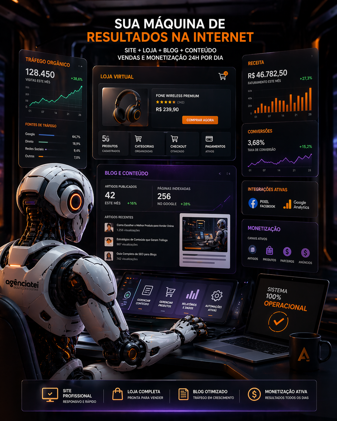 Site e loja pronta para monetizar é uma solução pensada para quem quer ir além de apenas colocar produtos online. A proposta aqui é unir loja virtual, blog e presença digital em um projeto mais completo, capaz de vender agora e também crescer em relevância, conteúdo e autoridade ao longo do tempo.